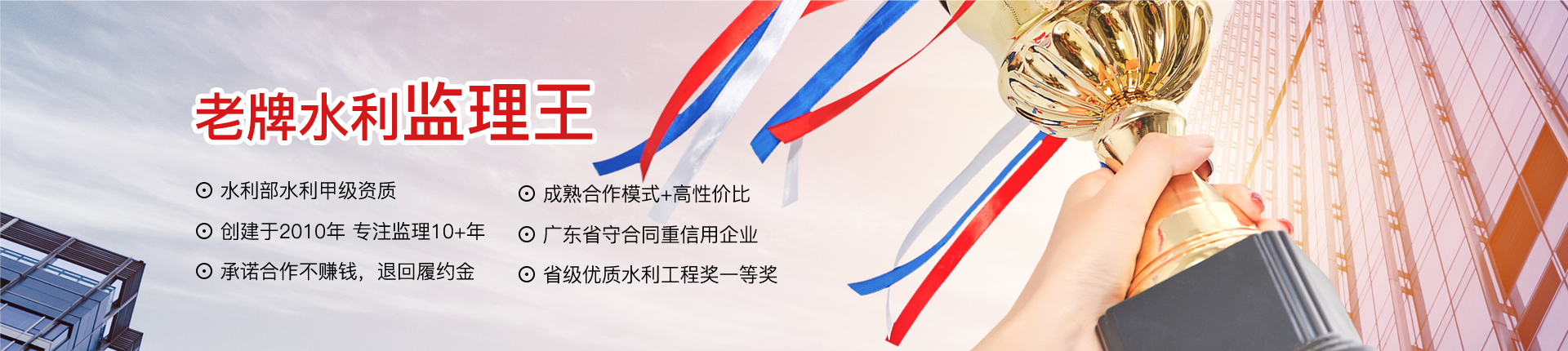 廣東中水工程監(jiān)理有限公司成立于2010年7月,是一家工程監(jiān)理綜合性服務企業(yè)。公司擁有水利部水利甲級、房屋建筑/市政公用甲級等資質(zhì),被列入廣東省政府采購代理機構(gòu)指定企業(yè),多次獲得“廣東省守合同重信用企業(yè)”等榮譽。